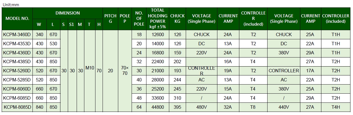 1.Pole 70X70 mm,Flux Line 40 mm,Magnetic Force 2800±5% kgf/4 Poles